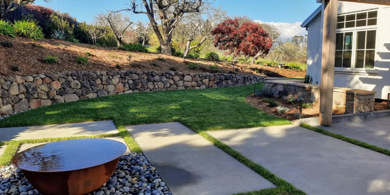 Modern hardscape designs like this are becoming increasingly popular in Santa Rosa and Sonoma County because they offer: