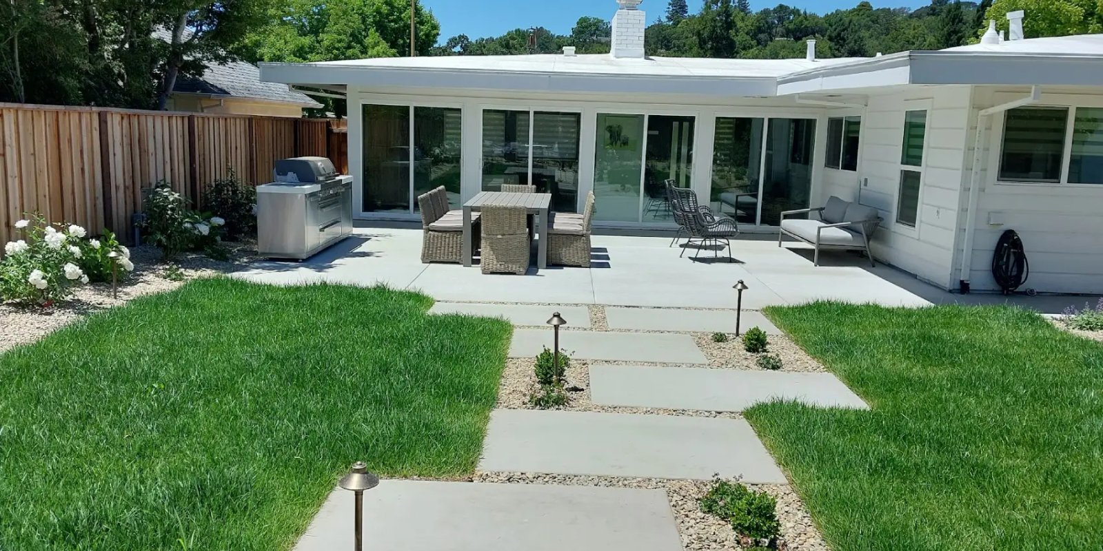 A well-designed outdoor space doesn’t just look great during the day — it should also be functional and visually appealing at night. This Santa Rosa project combines modern concrete walkways with strategic landscape lighting to create a clean, safe, and inviting backyard.